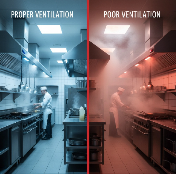 can’t pull air efficiently, heat and humidity accumulate in your kitchen, creating uncomfortable working